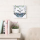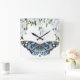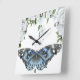 Clock with Blue Butterfly & Roses Quadratische Wanduhr
