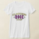 Dieses SchwingverstopfenT - Shirt sagt, "Cloggers FELSEN-Schritt" in den Schatten des Goldes und lila mit zwei wenig Tanzen, silberne Strichmännchen. Es ist ein Spaß Wordplayentwurf für Klotztänzer. Halten bei Sie sich das ClogDance Geschäft für größere clogger Entwürfe kurz auf.