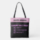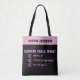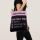 Dieses lustige Design der Tasche für Clog Tänzer sagt "Dreifach-Bedrohung einsperren" in rosa Text und listet dann die Wörter "Tanz, Choreograf, Instruktion" mit Karo Markierungen daneben auf. Es ist eine großartige Art, Ihre Tanzfähigkeiten zu zeigen, wenn Sie tatsächlich eine dreifache Bedrohung sind! Der Hintergrund ist schwarz. Fügen Sie einfach Ihren Namen oder den Namen Ihres Instruktors in das Vorlagenfeld ein.