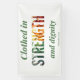 Autumn leaves and scripture intertwine in this design, where STRENGTH stands tall and colorful. The verse from Proverbs 31:25 speaks to a life adorned not in fashion, but in faith and fortitude.