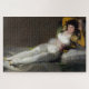 Dieses Design zeigt ein Gemälde des spanischen Künstlers Francisco Goya (1746-1828). Es zeigt eine elegante Dame namens Maja, die sich auf einer Chaise-Slang zurückzieht. Es ist eine bekleidete Version eines früheren Gemäldes, das die gleiche Frau ausgekleidet zeigte. Sie ist eine elegante Schönheit und überzeugt ganz klar von ihrem eigenen Körper. Sie trägt ein luxuriöses weißes Kleid und goldene Hausschuhe. Sie hat auch einen rosa Stoff um ihre Taille gewickelt, der ihre feminine Form und Kurven betont. Die ursprüngliche Kunst wurde zwischen 1800 und 1805 gemalt.
