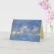 Eine geklappte Grußkarte mit einem Bild von Wolken und Himmel darauf, Farbe Gelb und Leere innen.