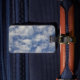Ein Gepäckanhänger mit einem Bild von Wolken und Himmel auf der Vorderseite und Blue Color/Blank auf der Rückseite.