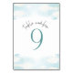 Cloud 9 - Blau-Weiß-Brautparty 9 Tischnummer