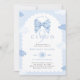 Mit dieser Cloud 9 Baby Dusche laden Sie zum süßesten Fest ein. Diese aufbereitbare Einladung ist mit sanfter Blues und einem zarten Coquette-Bogen ausgestattet und eignet sich perfekt für eine traumhafte Babydusche, die sich leicht wie Luft anfühlt!