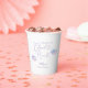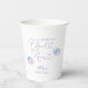 Traumhafte und romantische Brautparty-Papiertasse mit der Darstellung rosa, blau und lila Wolken mit einem Text, der besagt: "Die Braut ist auf Wolke neun".