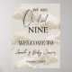 Elegante Aquarellfarben beige Kalligrafie Baby Dusche Begrüßungszeichen mit dem Titel "We are On Cloud neun".
