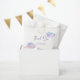 Dreamy und boho Wolke neun Thema Baby Dusche Gefallen Tasche mit Aquarell Abbildung von rosa und lila Wolken.
