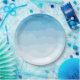 Schattierungen von blauen und weißen Wolken-Tellern. Koordiniert mit unserer Babydusche "On Cloud Nine".