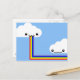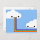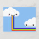 Eine niedliche Wolke, die einen Regenbogen auf eine Postkarte wirft. Ein lustiges Bild, das man während des Urlaubs oder an Kinder schicken kann.