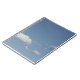 Ein hellblauer Himmel, der hell und farbenfroh mit weißen Wolken auf einem Notebook ist.