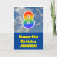 Die Vorderseite dieses lustigen 8. Geburtstagskarten-Designs zeigt eine Darstellung eines bewölkten blauen Himmels, zusammen mit der Zahl "8", die ein buntes Regenbogenspektrum wie Gradientenlook hat. Auf der Vorderseite befindet sich auch eine Geburtstags-Grußbotschaft mit einem bearbeitbaren Empfängernamen. Im Inneren befindet sich eine individuell anpassbare Geburtstags-Grußnachricht, oder vielleicht kann gelöscht und links werden, wenn eine Nachricht von Hand geschrieben werden soll. Eine individuell anpassbare Geburtstagskarte wie diese könnte eine lustige Art sein, eine Nachricht zum Feiern des achten Geburtstages von jemandem zu senden. [~Z0000370]