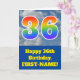 Die Vorderseite dieses lustigen 36. Geburtstagskarten-Designs zeigt eine wolkige blaue Himmelsdarstellung, zusammen mit der Zahl "36" mit einem farbigen Regenbogenspektrum wie Gradientenmuster. Auf der Vorderseite befindet sich auch eine Geburtstagsgrüßnachricht, einschließlich eines benutzerdefinierten Empfängernamens. Im Inneren befindet sich eine personalisierte Geburtstagsgrüßbotschaft, oder man könnte sie löschen und leer verlassen werden, wenn eine Nachricht von Hand geschrieben werden soll. Eine individuell anpassbare Geburtstagskarte wie diese könnte eine lustige Art sein, jemandes sechsunddreißigsten Geburtstag anzuerkennen. [~Z0000370]