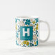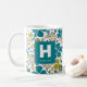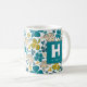 Green Clover Kleeblatt Muster Mit Monogramm St. Patrick`s Day Tasse. St Patrick's Tag moderne grüne, rosa und gelbe Tasse mit handgezeichnet grünem Kleeblatt, Kleeblatt. Fügen Sie Ihr Monogramm und Ihren Namen hinzu.
