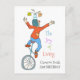 Ein glücklicher Clown ist auf einem Single-Rad darstellend und balanciert einen Krug Wasser auf seinem Kopf. Es gibt ein paar niedliche Blume im Krug. Die Menge beobachtet ihn. Er ist froh, alle Menschen, Kinder und Erwachsene, mit seinen Gleichgewichten zu unterhalten. Dieses Bild des Clowns kann eine Touch der Freude in dein Leben bringen. Es ist auch perfekt als Geschenk.