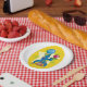 Ein Clown stehend auf dem Kopf mit ein paar Ballons um ihn herum. Dieses Design wirkt auf diesen Paper-Tellern sehr effektiv