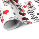 Dunkle und unheimliche, gruselige Clown-Geschenkpackung mit zirkus-inspirierten Gesichtern, Harlequin-Diamanten und fett gedruckten Karten-Anzügen in Rot, Schwarz und Weiß. Ideal für Halloween, Horror-Fans oder verdrehte Zirkus-Party. Eine unheimliche Art, Geschenke mit einem gespenstischen Flair zu verpacken.