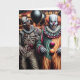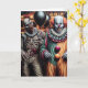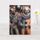 Beängstigender, bunter psychedelischer Comic-Stil Clown mit einem Ballon neben einer Zombie Halloween-Karte. Mit Innen-Pun und Färben Seite.