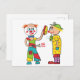 Zwei Zirkus-Clowns mit lautem Horn, Kuchen, Blume und Gesichtsmalenschminke in lustiger Gestaltung für Clownerfans.