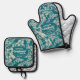 Clubsurfing Longboard Logo Hibiskus Hawaiian Aquam Ofenhandschuh & Topflappen-Set