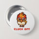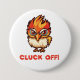 Ein wütend aussehendes Huhn mit der Phrase 'Hack off' auf einem Button-Knopf