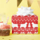 Clumber Spaniels Weihnachtsgeschenk Wrap. Rot-weiße Strick Weihnachtspullover-Stil mit Clumber-Silhouetten. Lassen Sie Ihren Urlaub mit einem besonderen Geschenk in diesem niedlichen Clumber-Spaniels gemusterte Packpapier verpackt. Karo in Jenn's Doodle World für noch festliche Weihnachtsgeschenke für Liebhaber vieler Hunderassen.