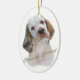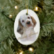 Clumber Spaniel-Posen unter Blumen und Schmetterlingen und wird auf einer Weihnachtsverzierung gekennzeichnet.