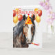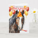 Dieses hübsche Eintauchen-Pferd feiert seinen Geburtstag mit festlich gelben und roten Ballons und Party-Accessoires, perfekt für den Pferdeliebhaber von Clydesdale.