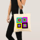 Moderne, stilvolle CMYK Monogram Tote Tasche, die geometrische Quadrat Muster in den Farben Cyan, Magenta, Gelb und Schwarz zeigt (Schlüssel). In der Mitte jedes kleinen Platzes ist ein KUNSTBARes MONOGRAMM, das Sie durch Ihren ersten ersetzen können. Ideal für CMYK-Liebhaber, Grafiker und die Farbkreative in Ihrem Leben.