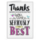 Lass deinem Mitarbeiter, wie sehr du sie schätzt, da zu sein, mit diesem einzigartigen handgeschriebenen Stil Typografie-Design mit der Nachricht: "Danke, dass du mir geholfen hast, mit diesem verrückten Ort umzugehen! Du bist erfreulicherweise die Beste." Das Design umfasst Vogel- und Blume-Akzent auf weißem Hintergrund.