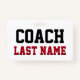 Wenn Sie Ihren Namen in roten Buchstaben mit einem Hintergrund-Schatten hinzufügen, um diese Kappe zu personalisieren, ist das Wort COACH in schwarzen Buchstaben auch eine Vorlage, wenn Sie den Teamnamen ändern möchten.