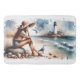 Diese ruhige Aquarellkunst vereint eine traumhafte Strandästhesie mit einer reflektierenden jungen Frau, die unter Muscheln sitzt und die sanften Wellen und einen weit entfernten Leuchtturm sieht. Mit sanften Ozeanfarben und zarten Farbtupfern erinnert das Stück an die Stille und Nostalgie der Sommertage am Meer. Der Leuchtturm liegt hoch an einer felsigen Küstenlinie und verankert die Komposition, während die Möwen über dem Meeresspiegel steigen und die Flut sanft am Sand abgleitet. Details wie der Strohhut, der geflochtene Korb und die verstreuten Muscheln verleihen dem Ganzen ein Gefühl von Wärme und Geschichte, das perfekt für diejenigen ist, die das Leben an der Küste und die ruhigen, naturlich inspirierten Szenen lieben. Ideal, um friedliche Erinnerungen am Meer in jedem Raum zu erwecken. AI generierte Kunstwerke.