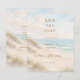 A watercolored sandy beach, sand dunes, ocean waves background. Personalize and add a date and your names.