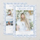 This editable coastal blue toile photo graduation party invitation sets the tone for your graduation celebration. The MUIR Collection features a coastal blue toile background with a photo of the graduate on the front and serif and elegant display fonts in dusty blue, and a series of photos on the back with the graduation party details, with a serif font in blue with 100% editable text. Use this blue grad invite for a high school graduation announcement, or a college graduation announcement by changing the text.