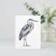 This beautiful postcard features a coastal blue heron bird in watercolor shades of blue and gray on a solid white background.