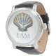 Coastal Blue Scallop Seashell Monogram Armbanduhr