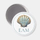 Dieser mit Monogramm Rundmagnet zeichnet sich durch eine Muschel aus, die in sanften Aquarelltönen von Blues und Tans an der Küste gehalten ist. Personalisieren Sie das Monogramm mit Ihrer Auswahl an Initialen. Spaß für personalisierte Geschenktaschen und Gastgeschenke.