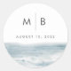 Coastal Blue Watercolor Monogram Gastgeschenk Hoch Runder Aufkleber