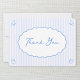 Diese bezaubernden Küstenkarten bringen müheloses Küstenkompetenz in Ihre Dankesnotizen. Dieses Design mit einem klassischen blau-weiß pinstripe Hintergrund und dezenten Akzenten der Jakobsmuschel in jeder Ecke erinnert an eine brisante Ozeanatmosphäre. Der skallopierte Rahmen und der elegante Script-Schriftart sorgen für eine zeitlose, raffinierte Touch - ideal, um nach einer Strandhochzeit, einer nautischen Babydusche oder einer Sommerfeier eine Wertschätzung auszusenden.