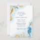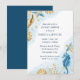 Romantische staubblaue und goldfarbene, handgemalte Wasserfarbe "unter dem Meer" Hochzeitskollektion. Muscheln, Seesterne, Seepferd und Korallenriff in Blau-, Gold- und Weißtönen mit einem Blau für das Wasser. Ihre Details in marineblauer moderner Schrift sind gerahmt durch die nautische Aquarelllandgrenze von eleganten Seekorallen, Muscheln und Seestern.