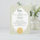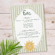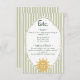 This whimsical coastal wedding details enclosure card features a vintage sun motif, lace border, palm tree, and stylish sage green stripe background. Perfect for a beach or California destination wedding. Created by Simply Farmhouse Press.