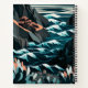 Coastal Energy: This vibrant flat vector illustration captures the dynamic beauty of a rocky beach from an overhead perspective. Dark blue and orange tones bring life to the scene as waves crash onto the shore, creating a captivating contrast. Geometric shapes add depth, while detailed textures on rocks and plants bring a natural feel to this stylized artwork. The minimalistic design emphasizes movement and energy, making it a perfect piece for those looking to add a bold and modern coastal vibe to their collection.