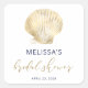 Dieser elegante Brautparty-Aufkleber zeigt eine Vintage Abbildung einer Jakobsmuschel-Muschel in Imitaten mit Goldfolie, über dem Begriff "Brautparty" in elegantem goldfarbenem Schriftzeichen. Passen Sie die Erholung des Textes mit dem Namen der zukünftigen Braut und dem Duschdatum in marineblau an.