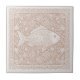 This coastal ceramic tile features a beautifully detailed fish surrounded by an intricate arrangement of swirling waves, coral branches, bubbles, seaweed, and stylized marine details. The design is printed in soft coral pink paired with crisp ivory white, giving it a striking two-tone look inspired by classic block-print and nautical artwork. With its rich pattern and handcrafted feel, this tile works beautifully in beach homes, nautical décor themes, accent walls, backsplashes, and decorative coastal projects. Simply choose your preferred color variation to suit your style. Search ID1208 to see additional colors and design motifs in this series. Note: design may contain generative content