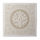This coastal ceramic tile features beautifully detailed lace coral surrounded by an intricate arrangement of swirling waves, coral branches, bubbles, seaweed, and stylized marine details. The design is printed in soft sand paired with crisp ivory white, giving it a striking two-tone look inspired by classic block-print and nautical artwork. With its rich pattern and handcrafted feel, this tile works beautifully in beach homes, nautical décor themes, accent walls, backsplashes, and decorative coastal projects. Simply choose your preferred color variation to suit your style. Search ID1208 to see additional colors and design motifs in this series. Note: design may contain generative content