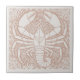 This coastal ceramic tile features a beautifully detailed lobster surrounded by an intricate arrangement of swirling waves, coral branches, bubbles, seaweed, and stylized marine details. The design is printed in soft coral pink paired with crisp ivory white, giving it a striking two-tone look inspired by classic block-print and nautical artwork. With its rich pattern and handcrafted feel, this tile works beautifully in beach homes, nautical décor themes, accent walls, backsplashes, and decorative coastal projects. Simply choose your preferred color variation to suit your style. Search ID1208 to see additional colors and design motifs in this series. Note: design may contain generative content