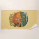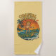 This fun sunshine-yellow beach towel is perfect for your next pool party or beach day. The kitschy "Coastal Lifestyle" throwback beach art is pure Florida kid chaos! This surfer boy already knows how to handle an alligator and catch a wave, no surfboard needed. He's a Florida native for sure! The surf beach at sunset scene has bold orange, red and yellow colors, complete with palm trees blowing in the tropical breeze. This cheeky vintage inspired surfing graphic will make you chuckle.