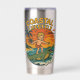 This kitschy "Coastal Lifestyle" throwback beach art is pure Florida kid chaos! This surfer boy already knows how to handle an alligator and catch a wave, no surfboard needed. He's a Florida native for sure! The surf beach at sunset scene has bold orange, red and yellow colors, complete with palm trees blowing in the tropical breeze. This cheeky vintage inspired surfing graphic will make you chuckle. You'll want to take this funny cup with you wherever you go! Perfect for the boat, beach, fishing and everyday coastal life. The stainless steel tumbler is insulated to keep your drink at the perfect temp.