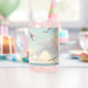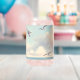 A serene coastal scene captures a graceful lighthouse standing tall beside calm waters as soft clouds drift across a pastel sky. Gentle seagulls glide through the air, adding movement and life to the tranquil horizon, while muted blues, creams, and sandy tones create a soothing, dreamy palette. This artwork evokes a peaceful seaside escape with a cottagecore coastal charm, blending whimsical softness with airy, light-filled composition. AI generated artwork.