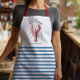 Die Schürze des Coastal Lobster Beach House weist einen weißen Hintergrund mit einem roten Maine-Hummer im Aquarellstil auf und das marineblau blaue Seil als Streifen. Personalisieren Sie es mit Ihrem Familiennamen und dem Datum in einem klassischen marineblauen Schriftart. Ideal für Zuhause und Hütten am Meer.